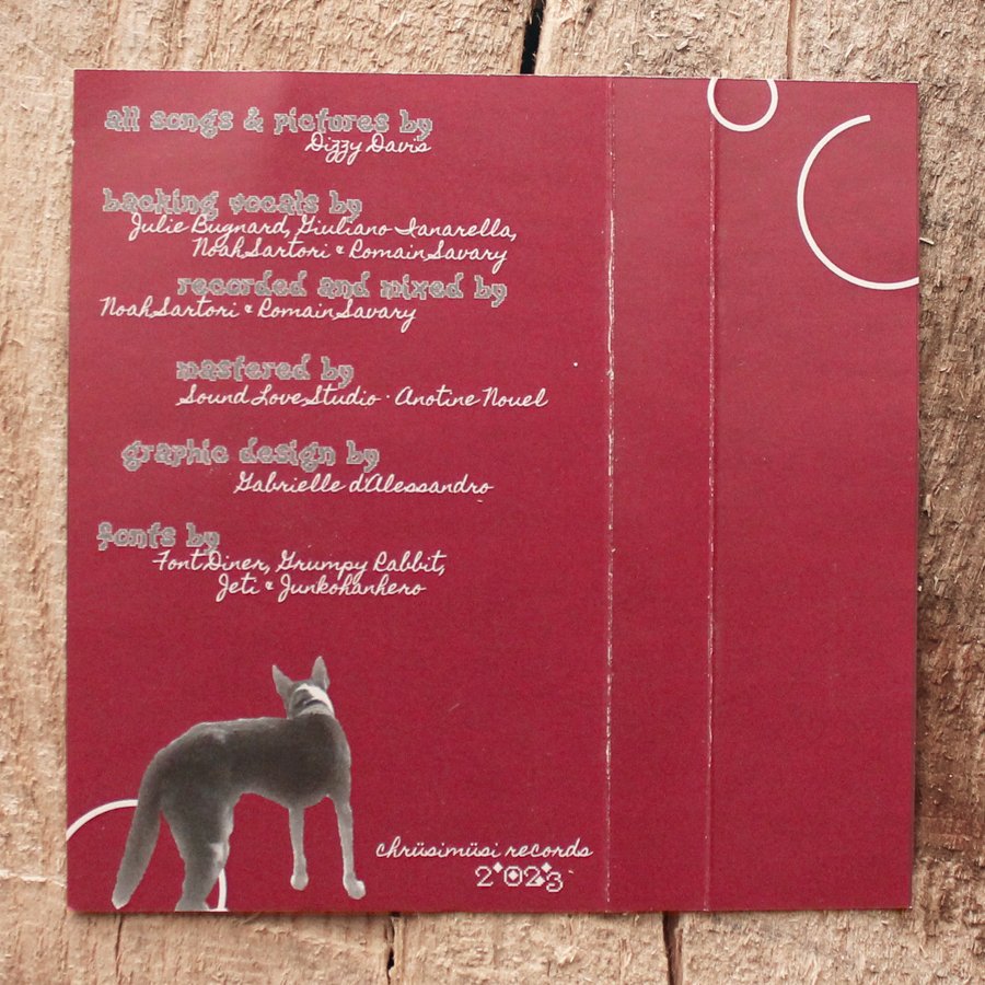 DIZZY DAVIS is the side-project and alter-ego of Radiana Basso from LEOPARDO. In case you’re somehow unfamiliar, allow me to assist you with that. Based in Switzerland, LEOPARDO has released multiple records on different labels, most notably on Feel-It Records, and are a modern garage/psych powerhouse. DIZZY DAVIS seems to share a lot of the players from LEOPARDO as backing band members and I have seen that they did a Euro tour together coinciding with the release of this cassette and the most recent LEOPARDO LP, both on Swiss based Chrüsimüsi Records. Any number of buzzwords could get thrown onto this and it would be accurate. Alternative, bedroom pop, garage, shoegaze. But any of them alone isn’t really all that accurate. Whip it all together and you’ll see that this is just unbelievably catchy pop music, think THE VASELINES but somehow more hypnotically catchy. I am absolutely hooked on this cassette and have listened to it countless times at this point. Having to wait for whatever the next release will be is sure to be no Swiss picnic.