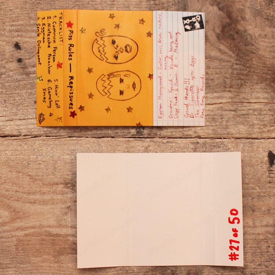 A brother-sister egg-punk duo based out of Brussels, Belgium with vocals reminiscent of early anarcho / peace punk stuff not unlike HONEY BANE in her earlier recordings with FATAL MICROBES when she, too, was a young teen. PISS RULES combine that youthful exuberance with driving, kooky, mostly electronic based song writing, still performing live with the brother on physical guitar duty. This is art-punk that somehow navigates the built-in pretense and comes off sounding incredibly sincere. The opening track “Common Person”, clocking in at a mere 53 seconds long, is in my opinion the best track on the cassette and is not a wildly condensed, singular version of the four times as long pluralized PULP song. XTRO does us the service of bringing us both the PISS RULES first two digital releases on one 6-song cassette. As always their quantities are incredibly limited so act quickly if you want to secure yourself a copy.