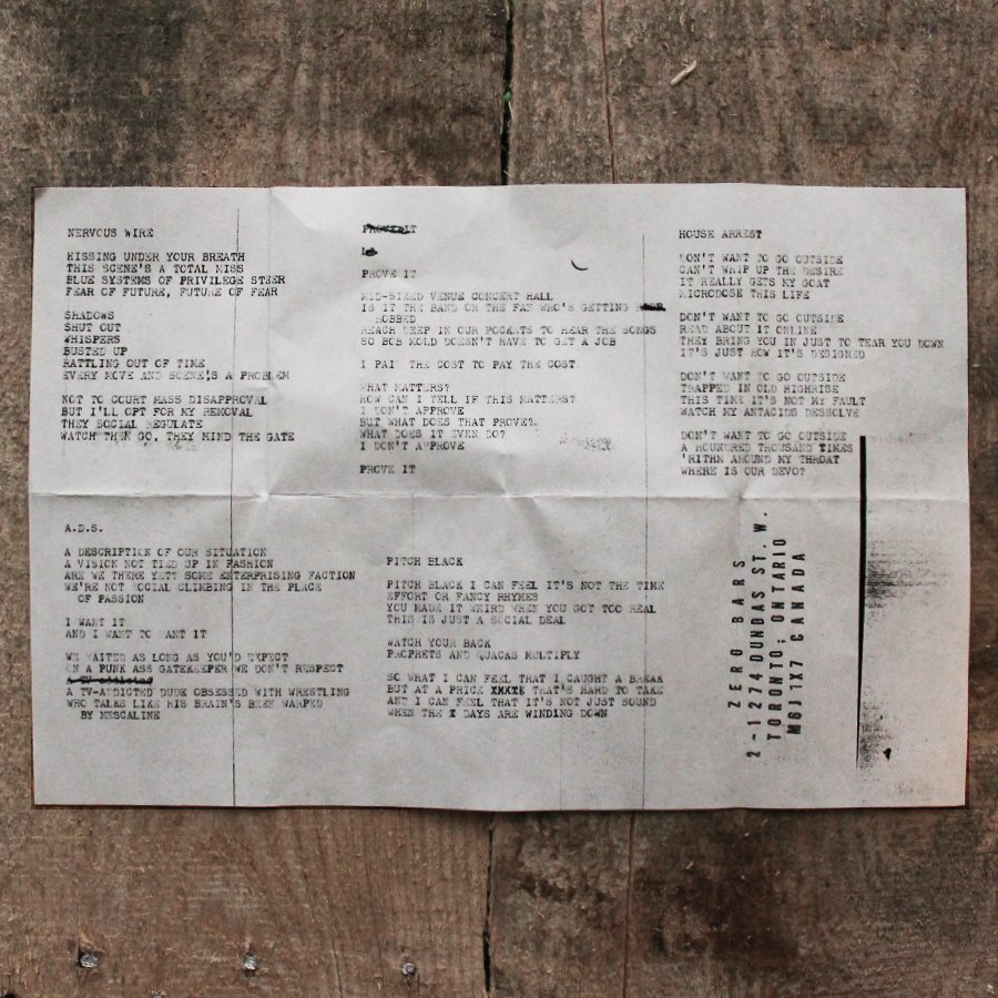 I was sent the first ZERO BARS demo to review at the end of 2023 by MAXIMUM ROCKNROLL and I remember liking it ok, but really liking that amidst their fast punk songs the band slipped us a curve ball of a catchy WIRE-esque post-punk number. Lo and behold they do it again on this release! ZERO BARS from Toronto are back with their second cassette, Life and Hell, taking the glimpses of good we saw on Demo 2023 and pumping every aspect up. The fast hardcore-punk songs are more driving and angrier. The post-punk number, “House Arrest” is catchier and feels more well rounded. On the first tape I liked the slower song more than the fast ones by a long-shot. On Life and Hell, ZERO BARS has really figured out the formula, making picking a favorite track, or even a preferred of the two styles an incredibly difficult task. Oh, and they end things with a ripping CRUCIFUCKS cover. That’s it, this rips, flip the tape and let’s take it again from the top!